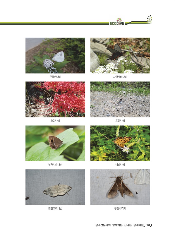 생태전문가와 함께하는 신나는 생태체험_ 103 큰줄흰나비 사향제비나비 호랑나비 은판나비 부처사촌나비 네발나비 왕갈고리나방우단박각시