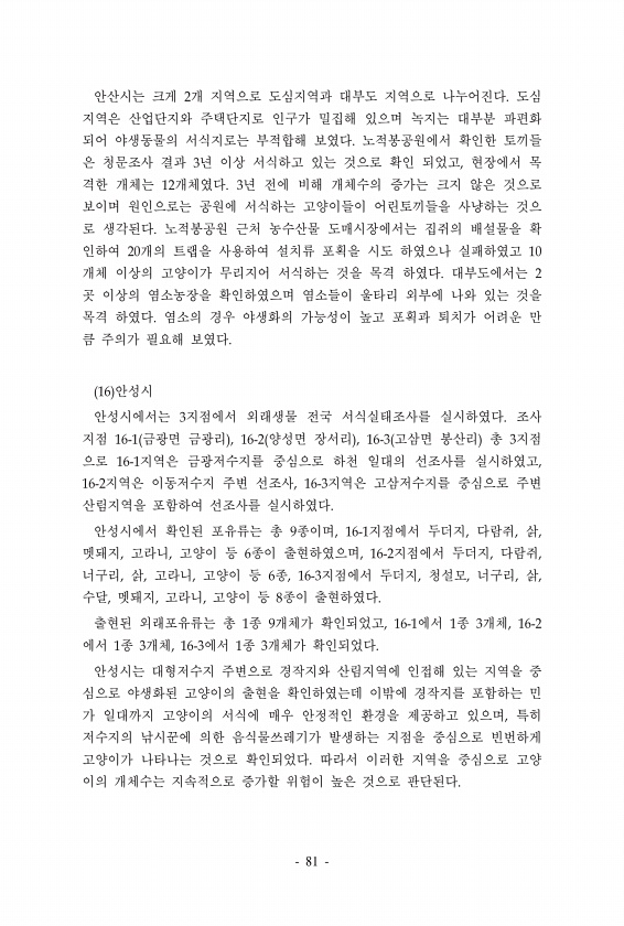 III. 조사결과 www.nie.re.kr ? 91 학명 국명 배후 산림 인공시설물 해빈-전사구 합계 서식 유형 비고 Phasianus colchicus 꿩 2 2 휴식 Ardea cinerea 왜가리 1 1 휴식 Ardea alba modesta 중대백로 5 5 휴식 Egretta garzetta 쇠백로 1 1 휴식 Charadriusalexandrinus 흰물떼새 1 1 휴식 Numenius phaeopus 중부리도요 3 3 휴식 Larus crassirostris 괭이갈매기 60 60 휴식 Larus vegae 재갈매기 1 1 휴식 Streptopelia orientalis 멧비둘기 4 4 휴식 Cuculus canorus 뻐꾸기 1 1 휴식 보호종 Eurystomus orientalis 파랑새 1 1...