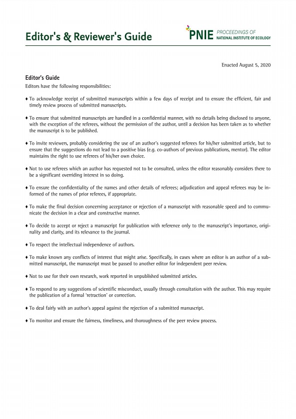 Editors & Reviewers Guide Enacted August 5, 2020 Editor’s Guide Editors have the following responsibilities? To acknowledge receipt of submitted manuscripts within a few days of receipt and to ensure the efficient, fair and timely review process of submitted manuscripts. ? To ensure that submitted manuscripts are handled in a confidential manner, with no details being disclosed to anyone, with the...