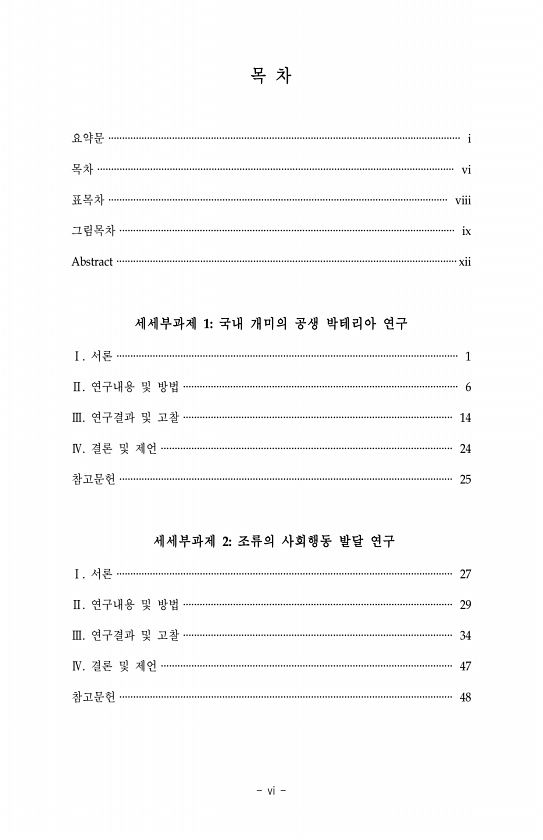 목 차 요약문 ······························································································································· i 목차 ································································································································ vi 표목차 ·························································································································· ...