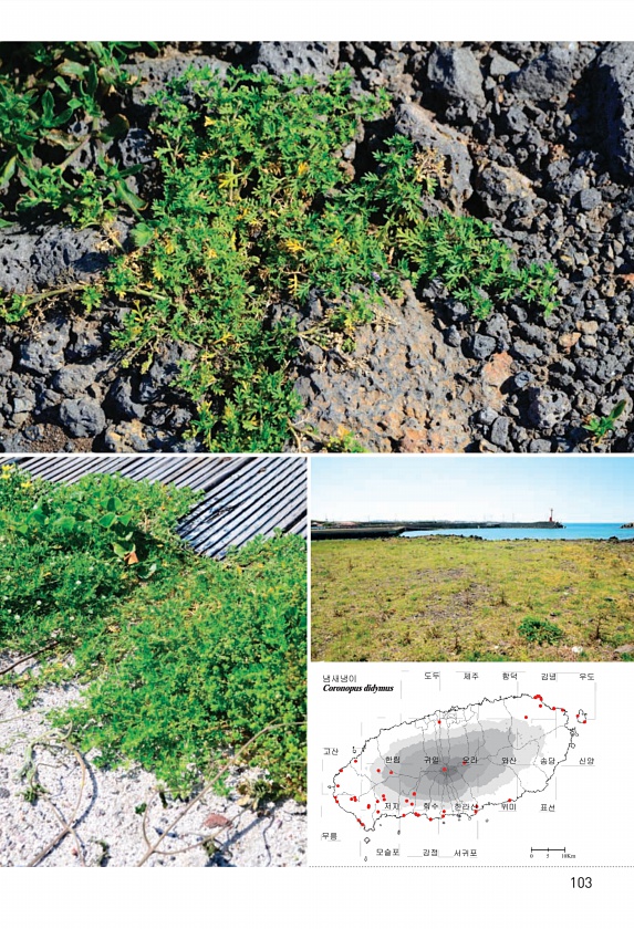 103 표선 모슬포 강정 서귀포 무릉 저지 회수 한라산 위미 고산 한림 귀일 오라 와산 신양 도두 제주 함덕 김녕 우도 송당 Coronopus didymus 냄새냉이 0 105Km
