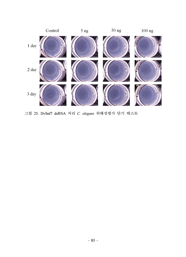 83 그림 25. DvSnf7 dsRNA 처리 C. elegans 위해성평가 단기테스트