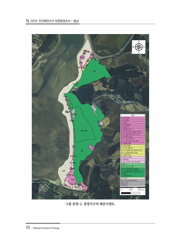 2018 전국해안사구 자연환경조사 충남 92 ? National Institute of Ecology 그림 중장-2. 중장사구의현존식생도.