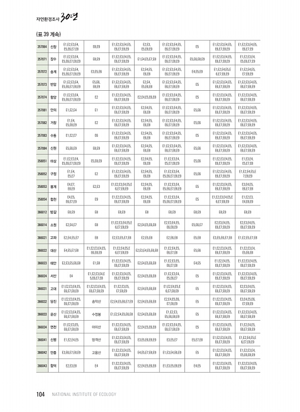 357064 신창 E1,E2,E3,E4, E5,E6,E7,E8 E8,E9 E1,E2,E3,E4,E5, E6,E7,E8,E9 E5,E8,E9 E2,E3, E1,E2,E3,E4,E5, E6,E7,E8,E9 E5 E1,E2,E3,E4,E5, E6,E7,E8,E9 E1,E2,E3,E4,E5, E6,E7,E9 357071 장수 E1,E2,E3,E4, E5,E6,E7,E8,E9 E8,E9 E1,E2,E3,E4,E5, E6,E7,E8,E9 E1,E4,E5,E7,E8 E1,E2,E3,E4,E5, E6,E7,E8,E9 E5,E6,E8,E9 E1,E2,E3,E4,E5, E6,E7,E8,E9 E1,E2,E3,E4, E5,E6,E7,E9 357072 송계 E1,E2,E3,E4, E5,E6,E7,E8,E9 E3,E5,E6 E1,E...