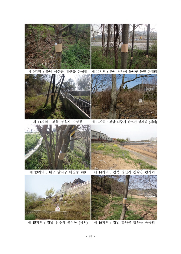 81 제 9지역 충남 예산군 예산읍 산성리 제 10지역 충남 천안시 동남구 동면 화계리 제 11지역 전북 정읍시 수성동 제 12지역 전남 나주시 산포면 산제리 제외 제 13지역 대구 달서구 대천동 788 제 14지역 경북 경산시 진량읍 평사리 제 15지역 경남 진주시 본성동 제외 제 16지역 경남 함양군 함양읍죽곡리