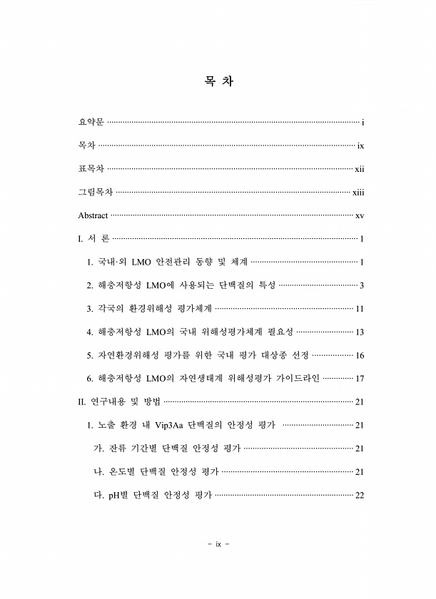 ix 목 차 요약문 ·················································································································· i 목차 ···················································································································· ix 표목차 ··············································································································· xii 그림목차 ························...