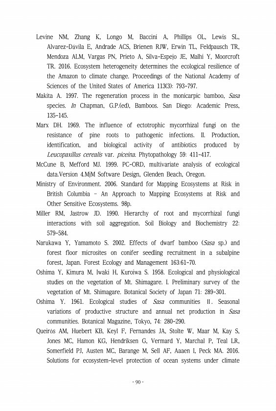 제목 : (2017) 기후변화 민감생태계 관리 및 보전방안 연구 : 아고산생태계 구상나무의 위협요인과 보전