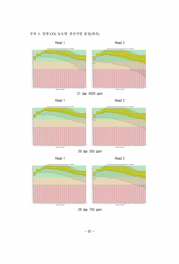 92 부록 1. 일별·CO2 농도별 생산서열 품질 계속 Read 1 Read 2 21 day 4000 ppm Read 1 Read 2 28 day 350 ppm Read 1 Read 2 28 day 700ppm