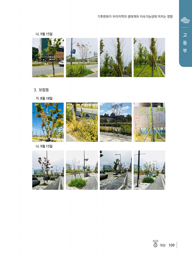 대상 109 고 등 부 기후변화가 우리지역의 생태계와 지속가능성에 미치는 영향 나. 9월 15일 3. 보람동 가. 8월 18일 나. 9월15일