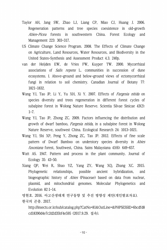 제목 : (2017) 기후변화 민감생태계 관리 및 보전방안 연구 : 아고산생태계 구상나무의 위협요인과 보전