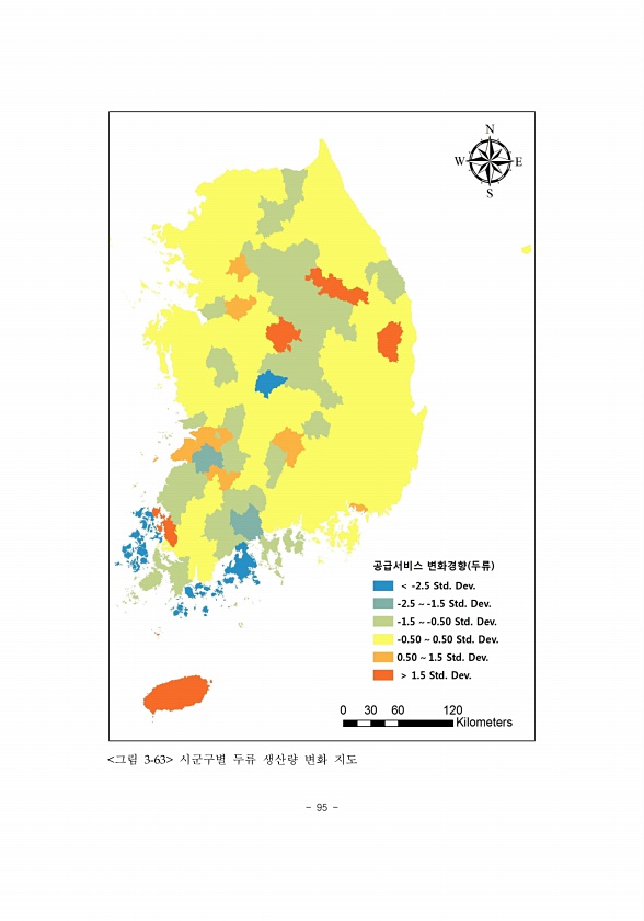 95 그림 3-63 시군구별 두류 생산량 변화지도