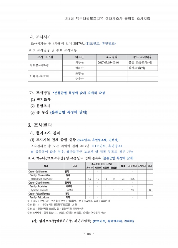 제목 : 백두대간보호지역 생태계 조사 지침서