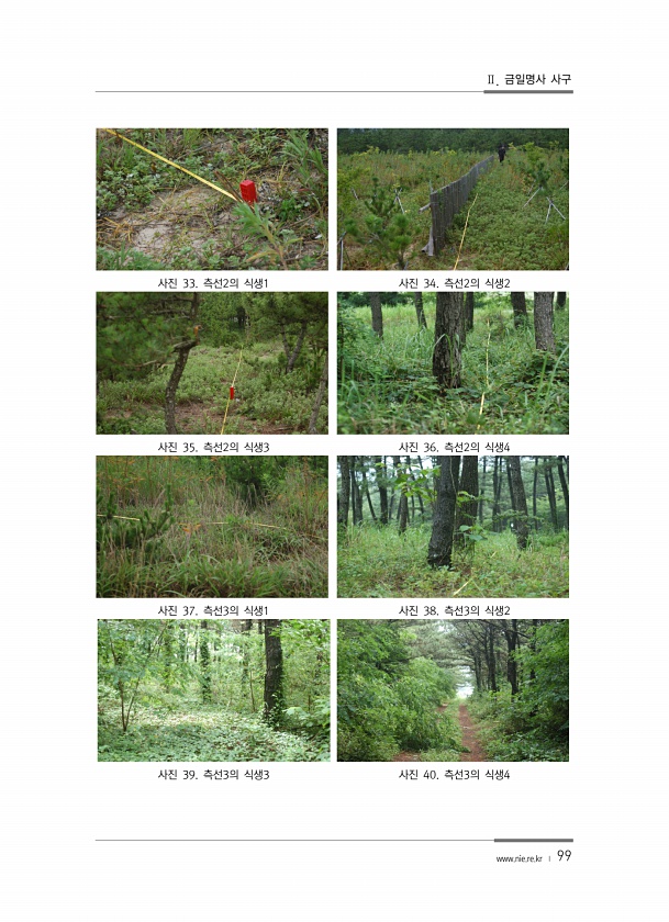 Ⅱ. 금일명사 사구 www.nie.re.kr ? 99 사진 33. 측선2의 식생1 사진 34. 측선2의 식생2 사진 35. 측선2의 식생3 사진 36. 측선2의 식생4 사진 37. 측선3의 식생1 사진 38. 측선3의 식생2 사진 39. 측선3의 식생3 사진 40. 측선3의식생4