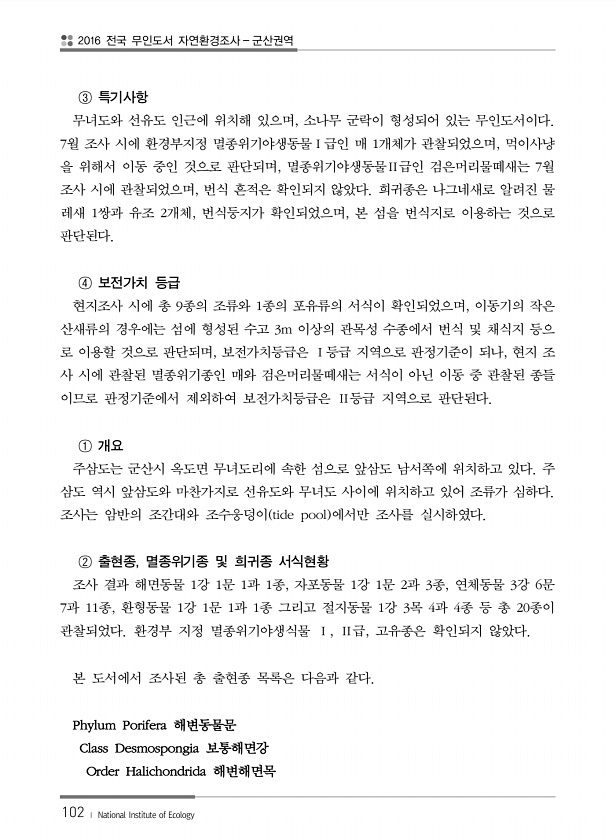 제목 : (2016) 전국 무인도서 자연환경조사 : 군산권역