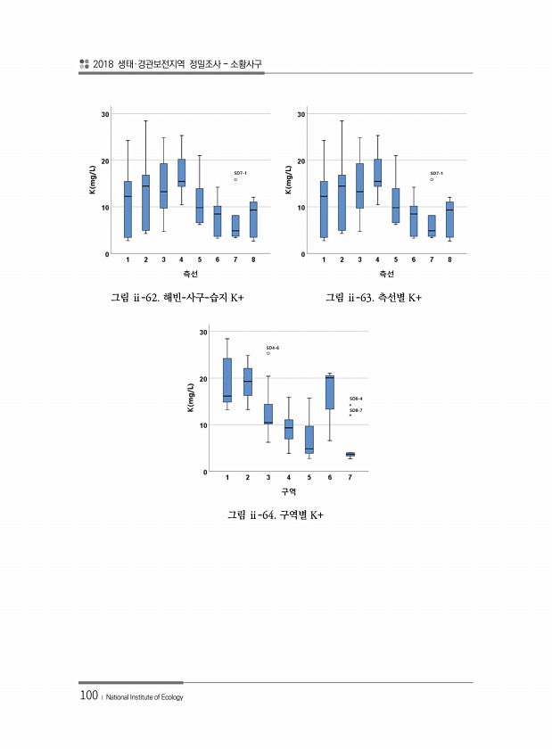 2018 생태·경관보전지역 정밀조사 소황사구 100 ? National Institute of Ecology 그림 ⅱ-62. 해빈-사구-습지 K+ 그림 ⅱ-63. 측선별 K+ 그림 ⅱ-64. 구역별K+