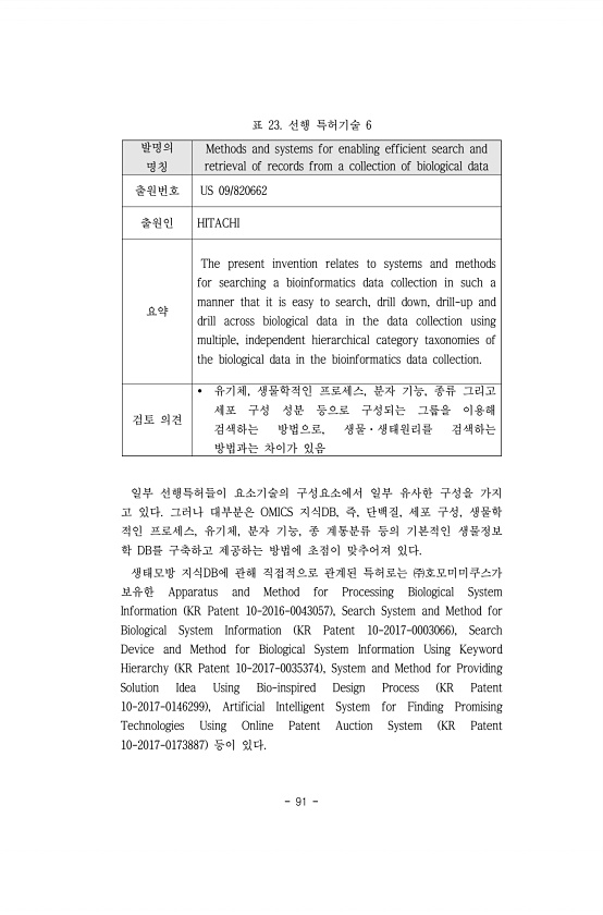 91 발명의 명칭 Methods and systems for enabling efficient search and retrieval of records from a collection of biological data 출원번호 US 09/820662 출원인 HITACHI 요약 The present invention relates to systems and methods for searching a bioinformatics data collection in such a manner that it is easy to search, drill down, drill-up and drill across biological data in the data collection using multiple, independ...