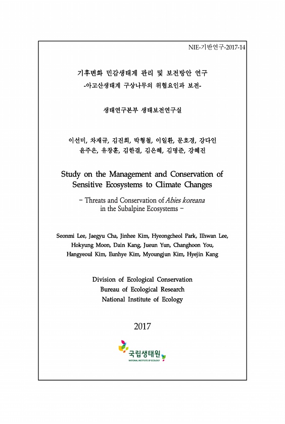 제목 : (2017) 기후변화 민감생태계 관리 및 보전방안 연구 : 아고산생태계 구상나무의 위협요인과 보전
