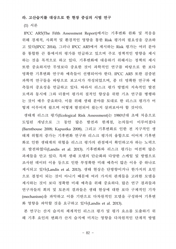 1 IPCC AR5 The Fifth Assessment Report ? , Risk IPCC 2014 ? ?IPCC AR5 Risk ? ? ? ? IPCC AR5 , ? ? ? Ecological Risk Assessment 1980 ? , Barnthouse 2008; Kapustka 2008 ? ? ? ? Landis et al. 2013 ? ? Landis et al. 2013 ? ? ? mechanism ? ? Landis et al. 2013 ? ?