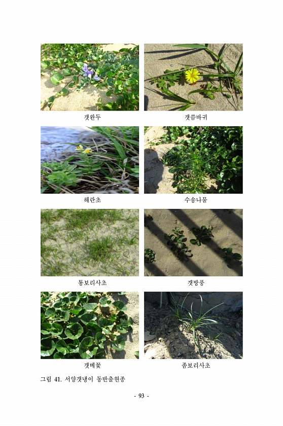93 갯완두 갯씀바귀 해란초 수송나물 통보리사초 갯방풍 갯메꽃 좀보리사초 그림 41. 서양갯냉이동반출현종