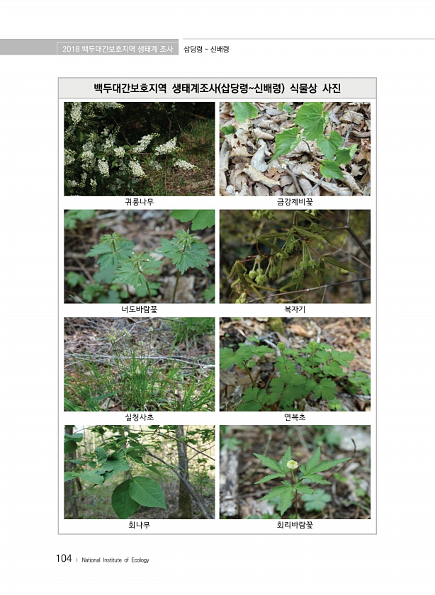 2018 백두대간보호지역 생태계 조사 삽당령 신배령 104 ? National Institute of Ecology 백두대간보호지역 생태계조사 삽당령신배령 식물상 사진 귀룽나무 금강제비꽃 너도바람꽃 복자기 실청사초 연복초 회나무회리바람꽃