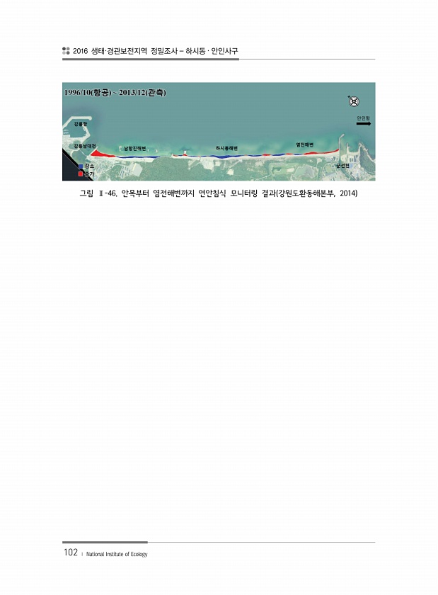 2016 생태·경관보전지역 정밀조사 하시동 · 안인사구 102 ? National Institute of Ecology 그림 Ⅱ-46. 안목부터 염전해변까지 연안침식 모니터링 결과 강원도환동해본부, 2014