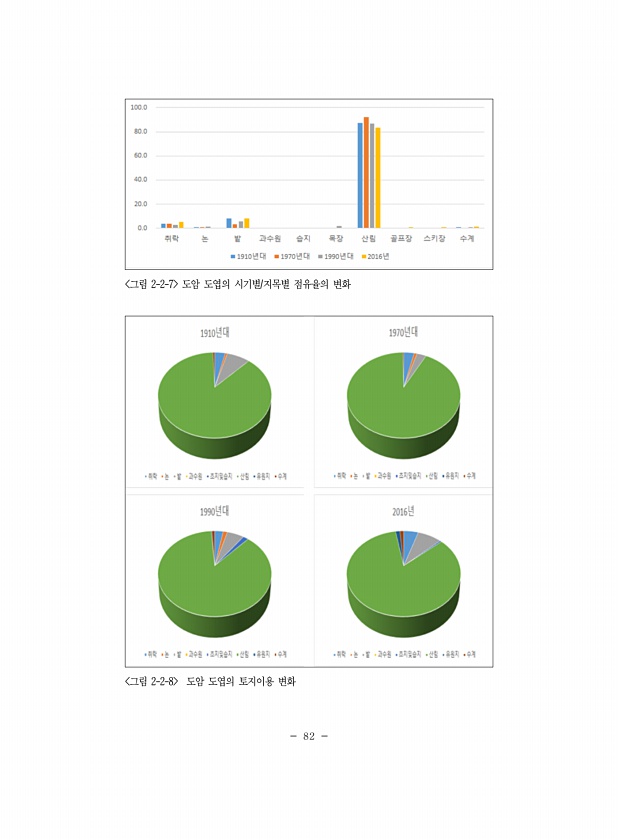 82 그림 2-2-7 도암 도엽의 시기별/지목별 점유율의 변화 그림 2-2-8 도암 도엽의 토지이용변화