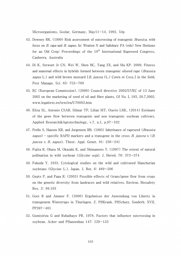 103 Microorganisms, Goslar, Germany, May11-14, 1992. 54p 43. Downey RK. 1999 Risk assessment of outcrossing of transgenic Brassica, with focus on B. rapa and B. napus. InWratten N and Salisbury PA eds New Horizons for an Old CropProceedings of the 10th International Rapeseed Congress, Canberra, Australia 44. Di K, Stewart Jr CN, Wei W, Shen BC, Tang ZX, and Ma KP. 2009. Fitness and maternal effect...