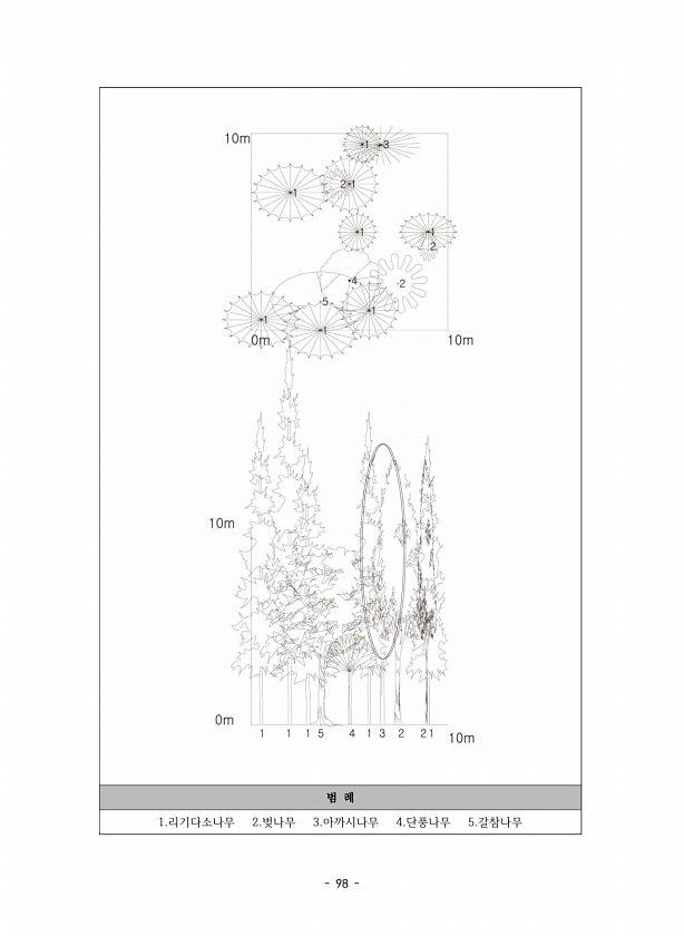 98 범 례 1.리기다소나무 2.벚나무 3.아까시나무 4.단풍나무5.갈참나무