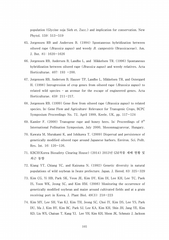 105 population Glycine soja Sieb et. Zucc. and implication for conservation. New Phytol. 159513-519 65. Jorgensen RB and Andersen B. 1994 Spontaneous hybridization between oilseed rape Brassica napus and weedy B. campestris Brassicaceae Am. J. Bot. 811620-1626 66. Jorgensen RB, Andersen B, Landbo L, and Mikkelsen TR. 1996 Spontaneous hybridization between oilseed rape Brassica napus and weedy rela...