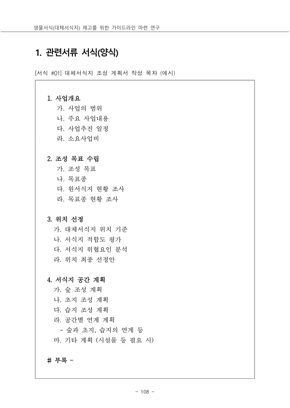 제목 : 생물서식(대체서식지) 제고를 위한 가이드라인 마련 연구