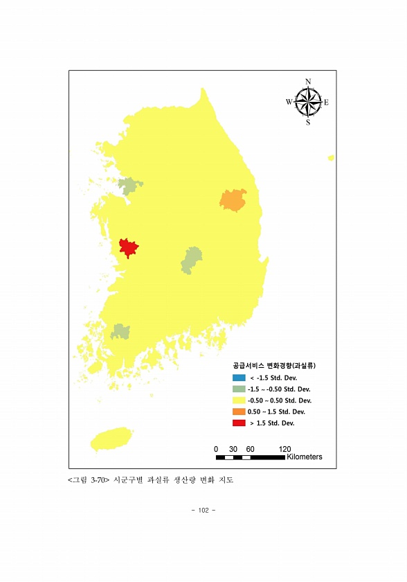 102 그림 3-70 시군구별 과실류 생산량 변화지도