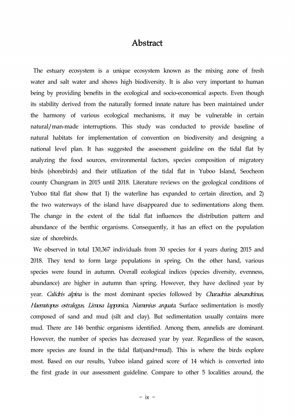 제목 : 기수생태계 내 국제적 멸종위기 이동성 물새 서식지 관리 연구. Ⅴ
