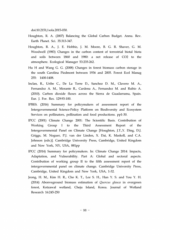 98 doi10.2151/sola.2015-030. Houghton, R. A. 2007 Balancing the Global Carbon Budget. Annu. Rev. Earth Planet. Sci. 35313-347. Houghton, R. A., J. E. Hobbie, J. M. Moore, B. G. R. Shaver, G. M. Woodwell 1983 Changes in the carbon content of terrestrial biotal biota and soils between 1860 and 1980a net release of CO2 to the atmosphere. Ecological Manager 53235-262. Hu H and Wang G. G. 2008 Changes ...