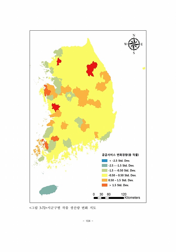 104 그림 3-72 시군구별 작물 생산량 변화지도