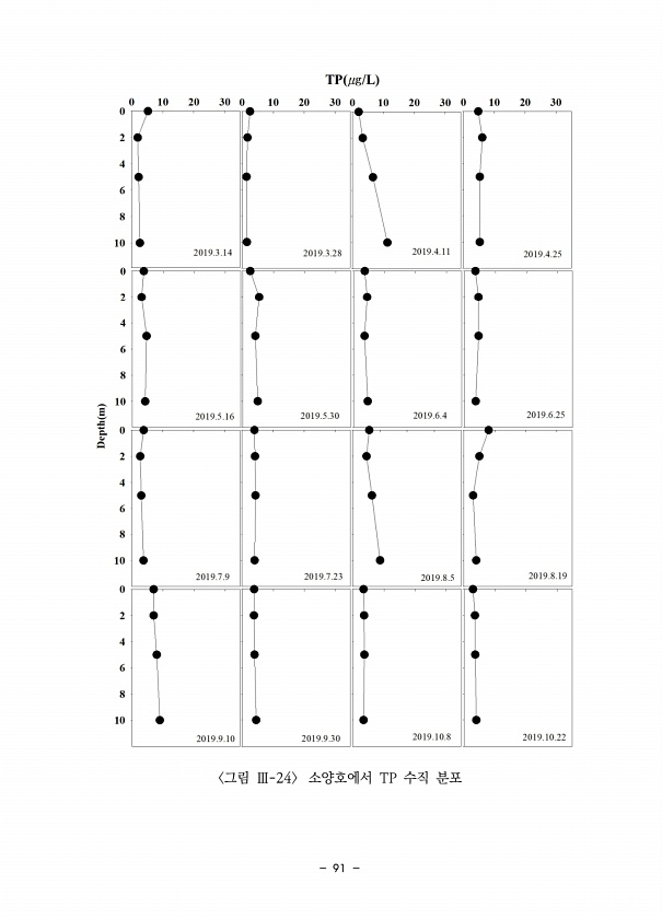 91 그림 Ⅲ-24 소양호에서 TP 수직분포