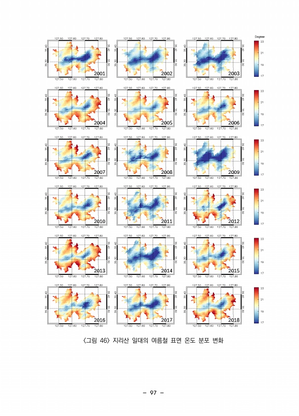 97 그림 46 지리산 일대의 여름철 표면 온도 분포변화