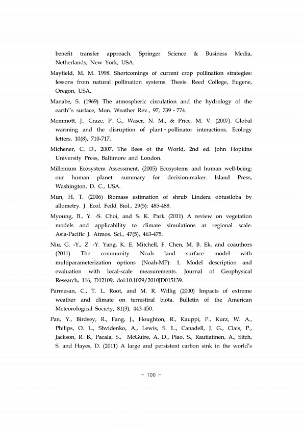 제목 : (2017) 생태계의 주요 조절 기능에 대한 기후변화 영향 연구