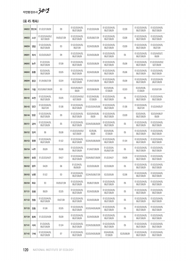 346032 영산포 E1,E2,E7,E8,E9 E9 E1,E2,E3,E4,E5, E6,E7,E8,E9 E1,E2,E3,E4,E6 E1,E2,E3,E4,E5, E6,E7,E8,E9 E2,E9 E1,E2,E3,E4,E5, E6,E7,E8,E9 E1,E2,E3,E4,E5, E6,E7,E8,E9 346033 소산 E1,E2,E3,E4,E5,E 6,E7,E8,E9 E4,E5,E7,E8 E1,E2,E3,E4,E5, E6,E7,E8,E9 E2,E5,E6,E7,E9 E1,E2,E3,E4,E5, E6,E7,E8,E9 E3,E8 E1,E2,E3,E4,E5, E6,E7,E8,E9 E1,E2,E3,E4,E5, E6,E7,E8,E9 346034 영암 E1,E2,E3,E4,E5, E6,E7,E8,E9 E3 E1,E2,E3,E4,E5...