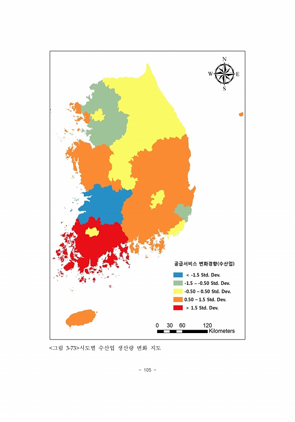 105 그림 3-73 시도별 수산업 생산량 변화지도