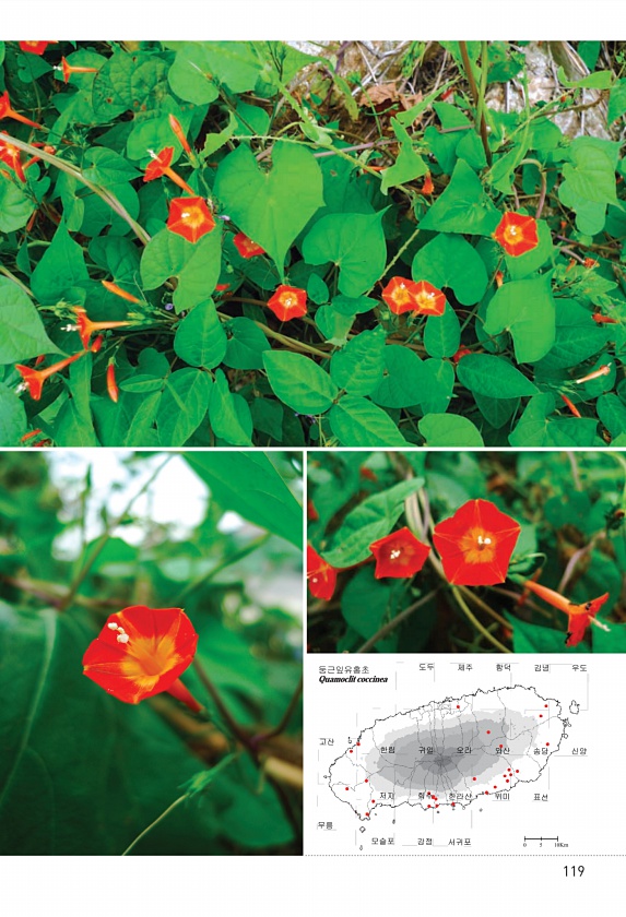 119 표선 모슬포 강정 서귀포 무릉 저지 회수 한라산 위미 고산 한림 귀일 오라 와산 신양 도두 제주 함덕 김녕 우도 송당 Quamoclit coccinea 둥근잎유홍초 0 105Km