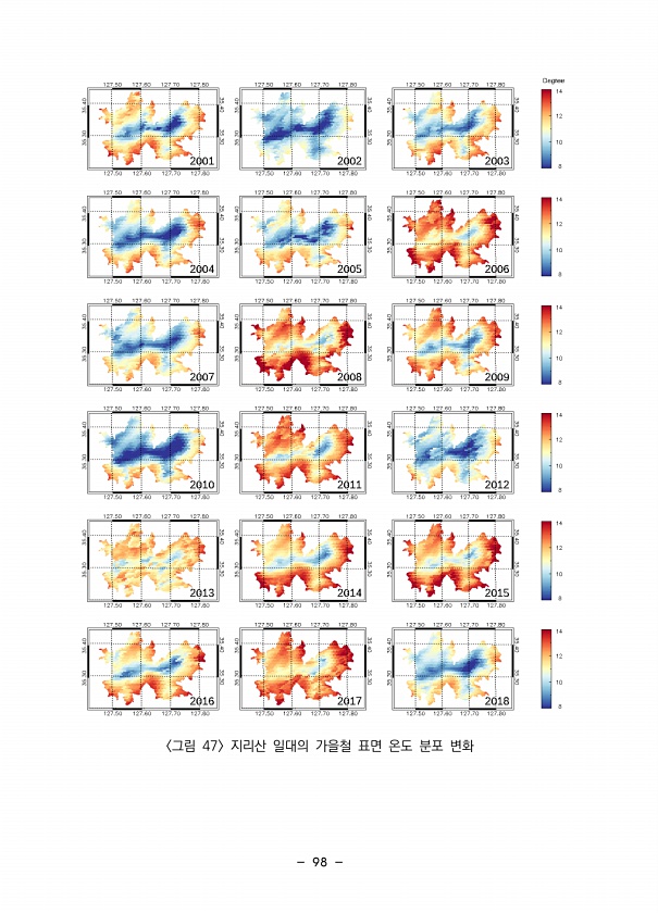 98 그림 47 지리산 일대의 가을철 표면 온도 분포변화