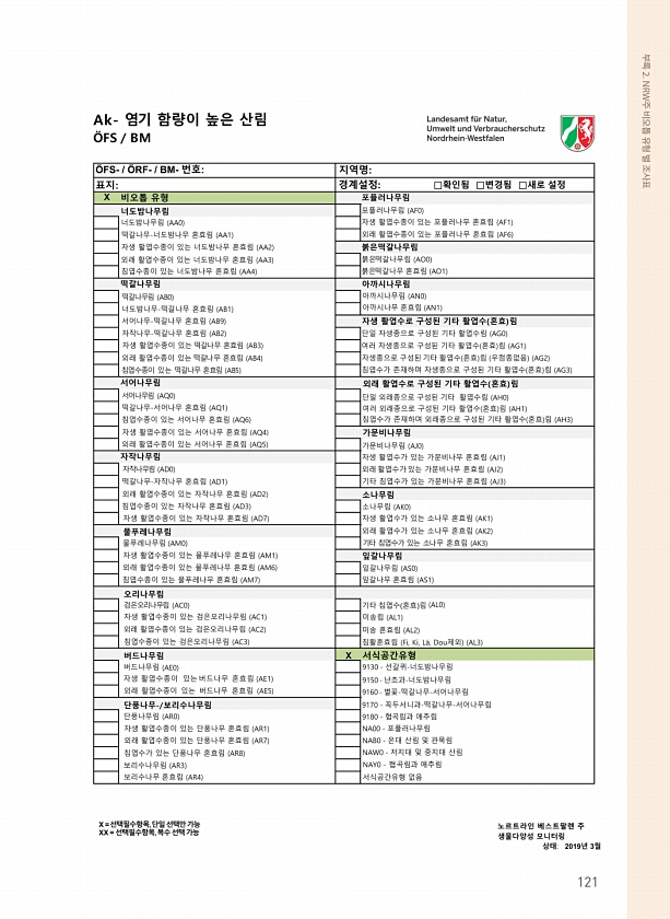 부록 2. NRW주 비오톱 유형 별 조사표121