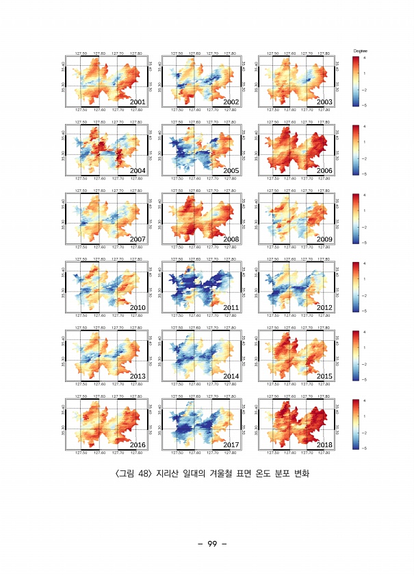 99 그림 48 지리산 일대의 겨울철 표면 온도 분포변화