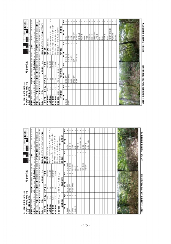 No 지리-덕평봉-0819-03 조사일자 2018년 08월 19일 조사자 김한결, 김?? 현장조사표 군락명구상나무군락 조사지역경남 하동군 화개면 대성리 산 4 유형□ 대조지 N □ 훼손지 D 식생상관아고산 침엽수림 면적15× 15㎡ 위·경도 GPS 35° 19′ 26.33″ N, 127° 39′ 39.20″ E 해발1483m 지형□산정□능선■사면 ■상□중□하 □계곡□평지 미세지형■평면 □돌출 □함몰□요철 방위290° 토양■ 갈색삼림토 □적황색삼림토 □암적색삼림토 □회갈색삼림토 □침식토 □미숙토 □암쇄토 경사26° 경도낙엽부식층7 cm 암석노출 % □≥51□ 50 □ 25□ 5■0 층위구분 높이 m 식피율 % 우점종 훼손 유형교 목 층 T1 9-12 60 구상나무 특기사항조릿대 60% 구상나무 치수 수고30c...
