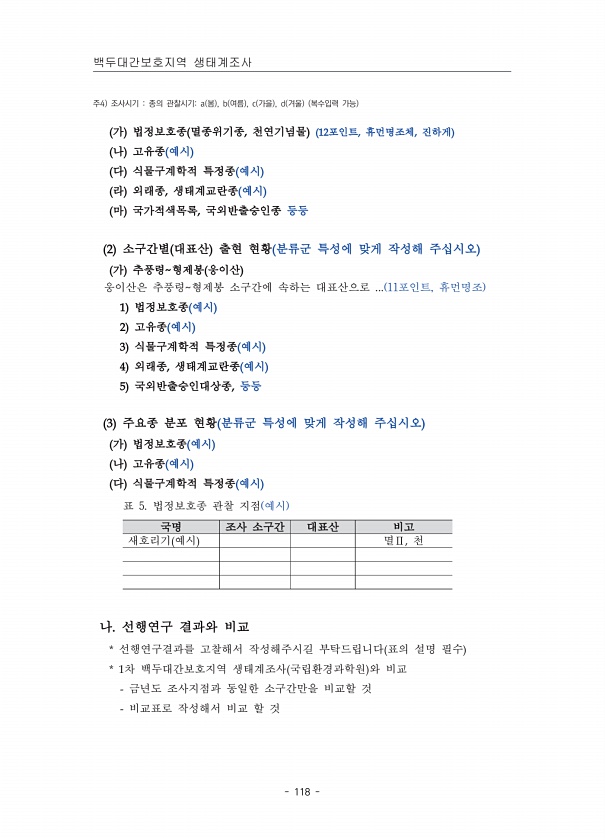 제목 : 백두대간보호지역 생태계 조사 지침서