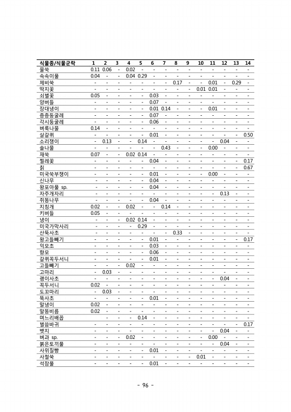 2018 백두대간보호지역 생태계 조사 삽당령 신배령 112 ? National Institute of Ecology 학 명 Scientific Name 국 명 Korean Name A B C 비고 Lotus corniculatus L. var. corniculatus 서양벌노랑이 * 귀 Maackia amurensis Rupr. & Maxim. 다릅나무 * Vicia amoena Ser. 갈퀴나물 * Vicia unijuga A. Braun 나비나물 * * Vicia venosa var. cuspidata Maxim. 광릉갈퀴 * * LYTHRACEAE J. St.-Hil. 부처꽃과 Lythrum anceps Koehne Makino 부처꽃 * ONAGRACEAE Juss. 바늘꽃과 Chamerion ang...