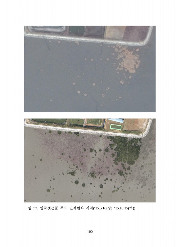100 그림 57. 영국갯끈풀 주요 면적변화 지역 ‘15.3.16 상 ‘15.10.15 하