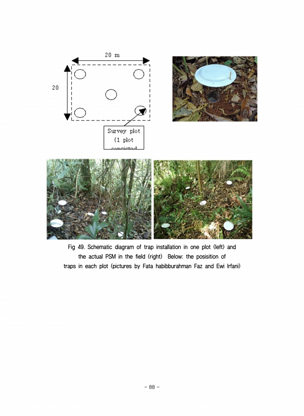 Fig 49. Schematic diagram of trap installation in one plot left and the actual PSM in the field right Belowthe posisition of traps in each plot pictures by Fata habibburahman Faz and Ewi Irfani 88
