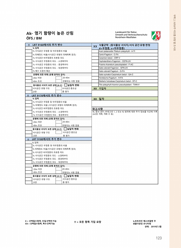 부록 2. NRW주 비오톱 유형 별 조사표123