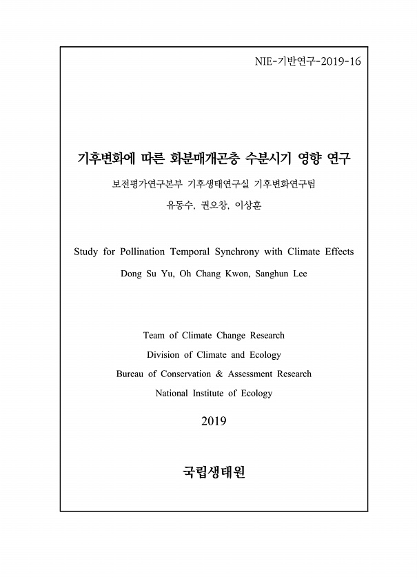 제목 : (2019) 기후변화에 따른 화분매개곤충 수분시기 영향 연구
